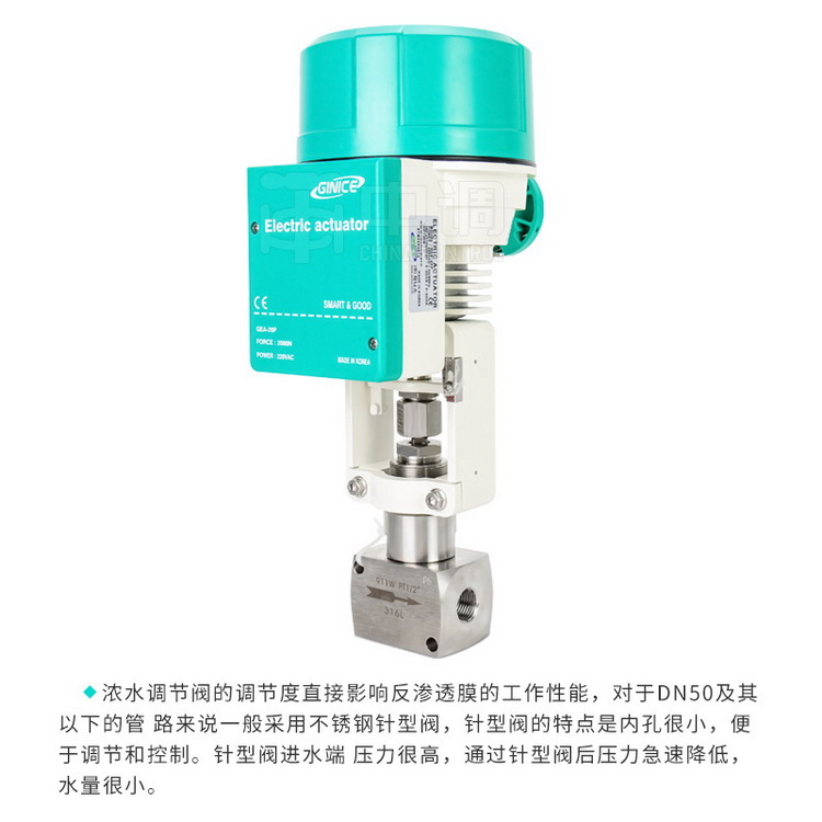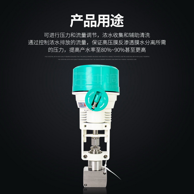 電動濃水調節閥是一種用于調節濃水排放量的閥門,通常用于反滲透水處理系統中。反滲透系統在處理水時,會產生一定量的濃水,而濃水調節閥的作用就是控制濃水的排放量,以保持系統的穩定運行。