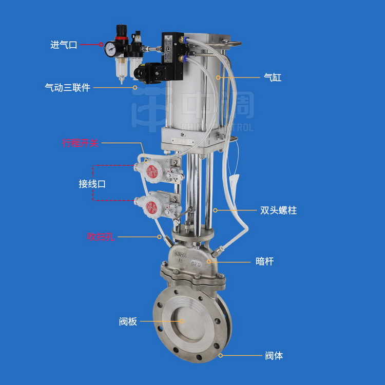 氣動刀型閘閥適用于高溫、高壓、強腐蝕性介質的控制系統